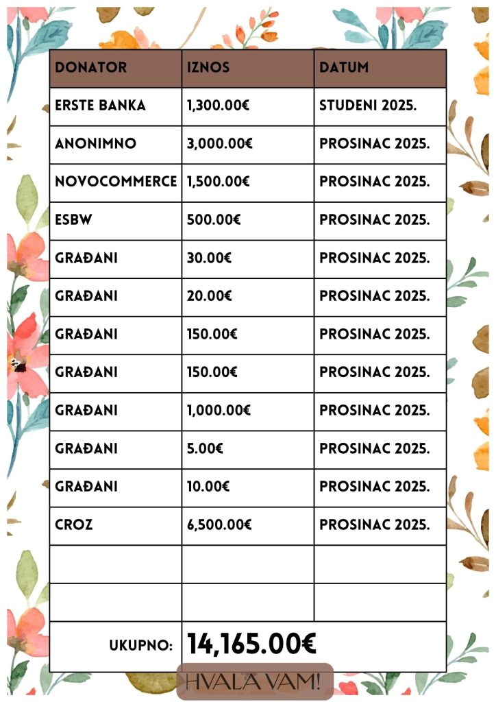 Tablica donacija fonda za kupnju kombija prilagođenog korisnicima u invalidskim kolicima Objavljeno 29. prosinca 2025. autor Admin